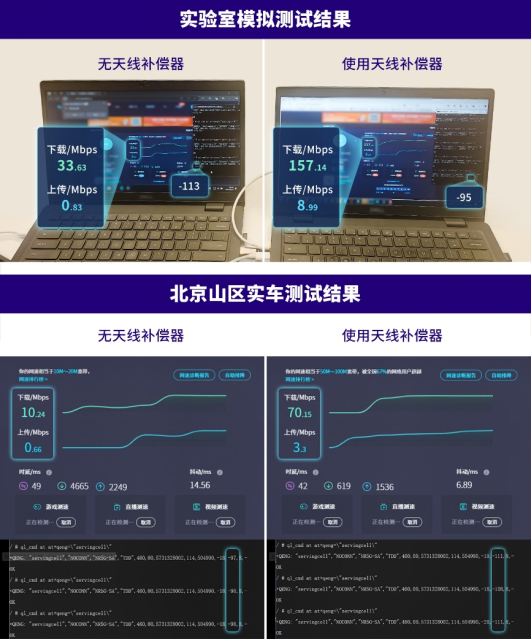 在地下停车场、山区、野外等弱网场景中,移远车载蜂窝天线补偿器通过信号放大与噪声抑制,明显提升吞吐量。在实验室模拟测试中,n41频段弱网下信号传输效率提升超5倍;在北京山区实车测试中,无补偿器时链路吞吐量受限,启用后性能实现飞跃,有效保障了实时数据传输的连续性与完整性。